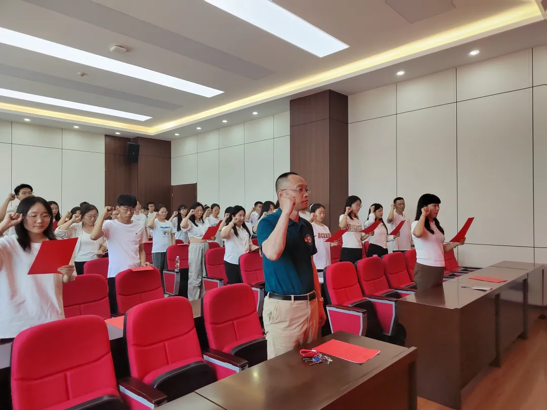 仪式伊始,新党员宣誓,支部党员重温入党誓词。全体起立,面向党旗,举起右拳,在郭瞳书记的领读下庄严宣誓,表达了对党的深厚感情和为党的事业奋斗终身的决心。