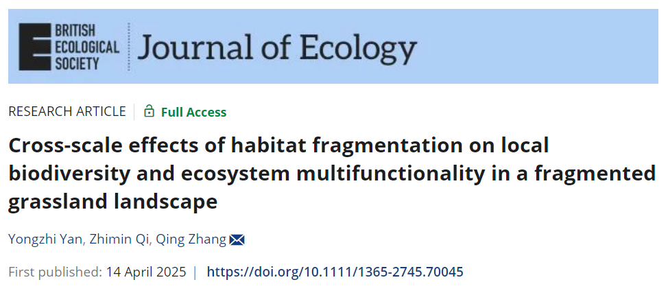近日,ok138cn太阳集团529张庆教授团队在生境破碎化对草地生物多样性和生态系统功能影响方面取得了最新进展。研究成果以“Cross-scale effects of habitat fragmentation on local biodiversity and ecosystem multifunctionality in a fragmented grassland landscape”为题发表于生态学经典学术期刊《Journal of Ecology》。