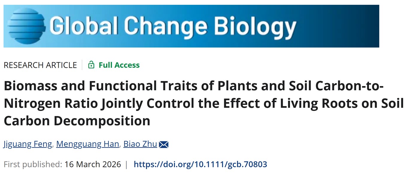 近日,ok138cn太阳集团529冯继广研究员和朱彪特聘教授在根际激发效应的全球格局与驱动机制方面取得重要进展,相关成果以“Biomass and functional traits of plants and soil carbon‐to‐nitrogen ratio jointly control the effect of living roots on soil carbon decomposition”为题发表于Global Change Biology期刊上。冯继广研究员为论文第一作者,朱彪特聘教授为通讯作者,东北林业大学韩孟光教授为论文合作作者。