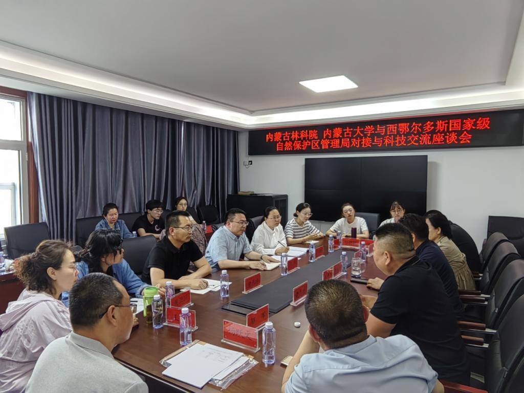 西鄂尔多斯国家自然保护区管理局奇牧人局长首先代表管理局向到访人员的到来表示热烈欢迎,并详细介绍了保护区的建设历程、整体状况、人才需求及未来发展规划。内蒙古自治区林业科学院林业研究所所长莎仁图雅研究员介绍了内蒙古鄂尔多斯森林生态系统国家定位观测研究站的基地建设情况、科学研究方向、未来发展建议。我院副院长张庆教授介绍了我院的师资队伍、学科发展、专业建设、毕业生就业、教学科研平台情况,并就毕业生就业、科研合作进行了三方深入交流。