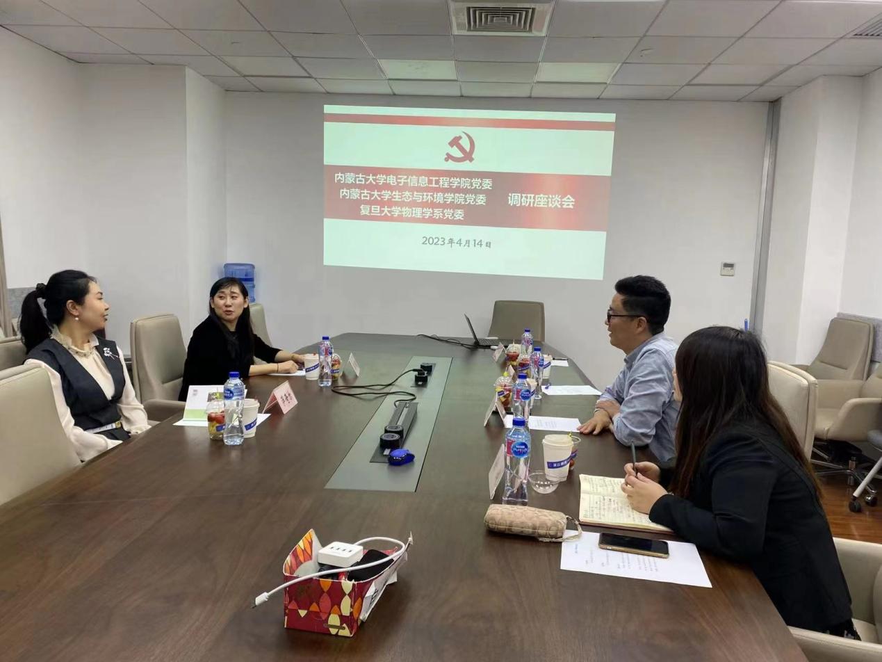 2023年4月14日,OK138太阳集团电子信息工程学院党委书记萨奇尔、ok138cn太阳集团529党委副书记郭瞳一行赴第二批全国党建工作标杆院系——复旦大学物理学系进行调研学习。复旦大学物理学系党委书记刘召伟、副系主任徐娥、党委办公室主任高太梅参加此次调研学习。