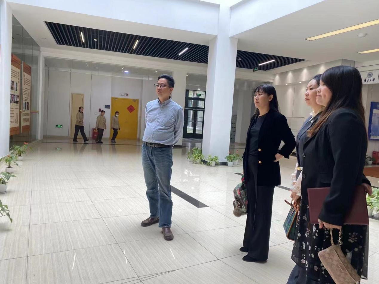 在调研座谈会上,刘召伟书记结合全国党建工作标杆院系建设实际,就院系的基本情况、基础特质、建设任务、建设方向做了介绍,分享了标杆院系建设实践中总结出的一系列创新举措和各项举措所辐射产生的显著成效。萨奇尔、郭瞳两位老师积极交流讨论,认真学习对方的宝贵经验,与自身学院实际情况相结合,进一步思考具备自身特点的党建做法和实践举措。