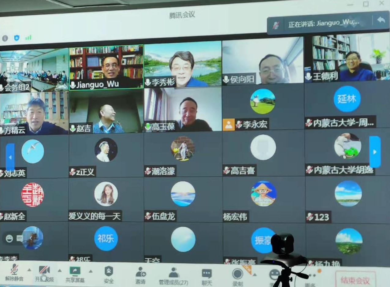 “蒙古高原生态学与资源利用教育部重点实验室(筹)”2020年年会暨学术委员会会议于2021年1月31日在OK138太阳集团学术会议中心+线上会议召开。参加会议的有实验室学术委员会全体委员方精云、高吉喜、高玉葆、候向阳、李秀彬、李永宏、梁存柱、牛建明、王德利、邬建国、杨劼、赵吉和赵新全,以及实验室研究人员共63人,包括线上会场32人(照片一)和线下会场31人(照片二)。我校副校长高光来和科学技术处处长牛一丁出席会议。高光来致辞强调做好重点实验室工作在一流学科建设中的作用以及学校一如既往大力支持实验室的政策,并对实验室的工作提出新的要求。