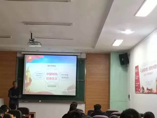 此次报告会的题目为学习习近平新时代中国特色社会主义思想,共圆伟大中国梦。报告会主讲人为我院党总支书记李笑春。