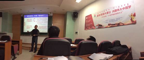 2018年11月15日下午5点ok138cn太阳集团529在生物楼101开展了以“建设亮丽内蒙古,共圆伟大中国梦”为主题的全国高校“百场形势政策报告会”,ok138cn太阳集团529全体教师及全体学生党员参会。