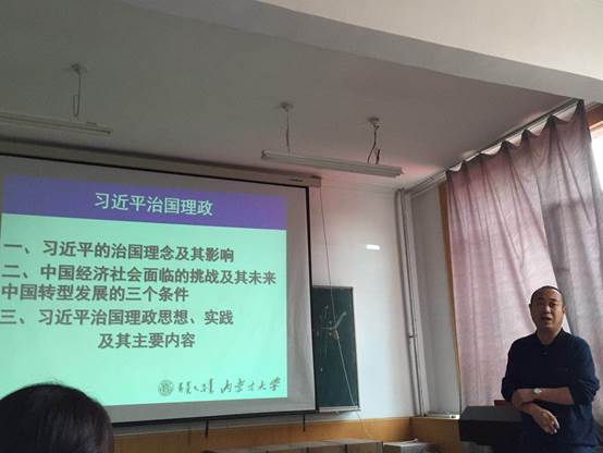 2018年3月16日下午4:30,ok138cn太阳集团529在主楼322召开了中心组(扩大)学习会议,会议由党总支书记李笑春主讲,学习主题为:“习近平治国理政与中国转型发展”,学院中心组成员及教工支部全体党员参加会议。 会上,李笑春书记为全体教工党员做习近平治国理念及其影响的党课讲座。本次讲座主要围绕习近平的治国使命、治国策略以及中国经济发展面临的挑战、思想实践等三个方面展开,不断推动党的十九大精神进教材、进课堂、进头脑。
