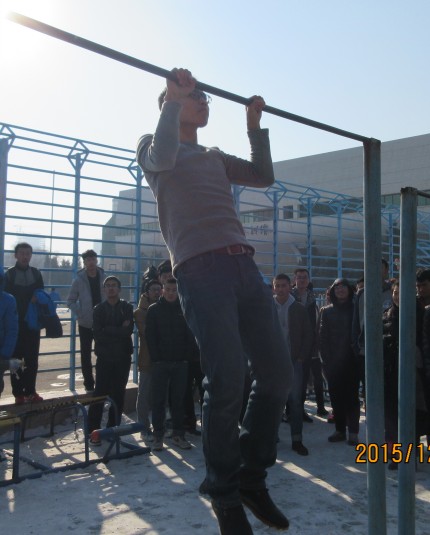 2015年12月18日中午12:30,环境与资源学院参加了学校举办的男子引体向上比赛,并且取得了总分第一的好成绩。
