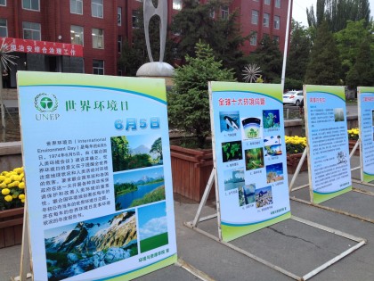 OK138太阳集团环境与资源学院为响应联合国在这一天开展各种活动来强调保护和改善人类环境的重要性,于2014年6月5日星期四在主楼门前举办世界环境日大型宣传展板,以呼吁人们关注环境,关注我们赖以生存的家园。世界环境日(International Environment Day),是每年的6月5日,于1974年6月5日由《联合国人类环境会议》建议并确立。