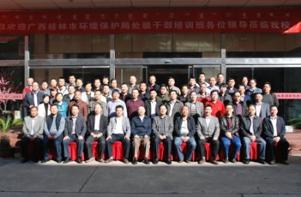 由桂林市组织部主办,桂林市环保局承办的桂林市县处级领导干部培训班于2013年9月24日在我院举行。来自桂林市各级政府、环保局、农业局、国土资源局、规划局、水利局等单位的56名处级领导干部参加了培训。