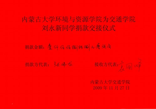 环境与资源学院得知这一消息后,非常关切,学生会在全院师生中发起倡议,为刘永新同学捐款,两天时间内共计捐款1500多元,有的同学把积攒多年的零用钱捐了出来,钱虽不多,却也体现了环境与资源学院师生的爱心、奉献精神,表达了环境与资源学院20余名教职工和160名同学力所能及的帮助,也带去了学院全体师生的良好祝愿,衷心祝愿刘永新同学早日康复,继续完成学业,早日成才!