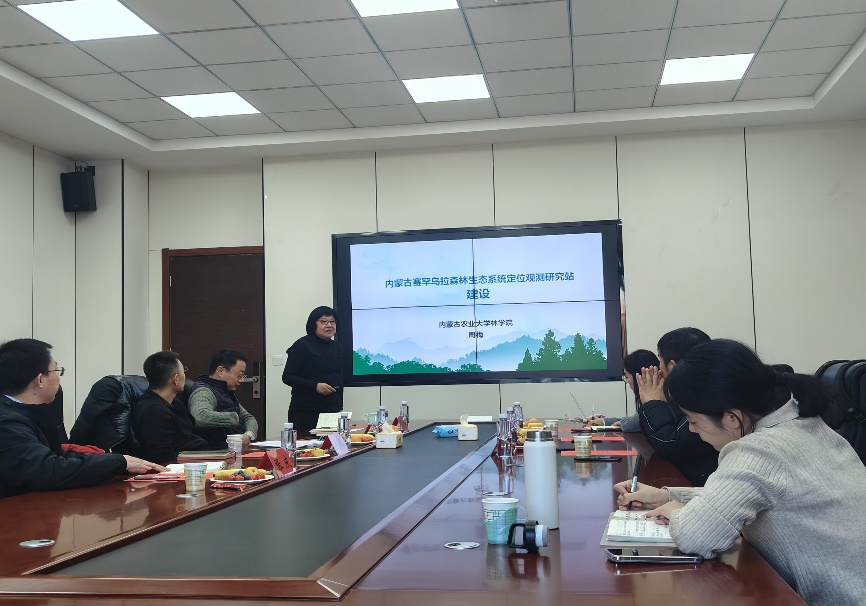 在学术交流环节,周梅教授首先作了题为《内蒙古赛罕乌拉森林生态系统定位观测研究站建设》的报告。报告从机构建设、数据观测、科研产出、成果应用、条件保障以及人才培养六个方面来介绍了赛罕乌拉生态站的发展历程。周梅教授表示赛罕乌拉生态站的使命是为林业行业服务,因此生态站积极参与了诸如退耕还林工程和田林保护工作的生态效益评估等项目,同时也致力于森林探索、自然教育等科普工作。