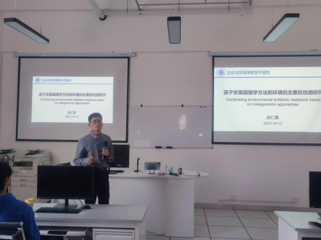 2023年10月12日下午,我院“骏马计划”研究员赵仁鑫老师为我院师生作了题为“基于宏基因组学方法的环境抗生素抗性组研究”的专题报告。抗生素耐药性问题已成为当今全球公共卫生面临的最严峻挑战之一,并且这一问题正变得日益严重。同时,抗生素抗性基因作为一种新兴的生物类污染物,其在环境中的持久性残留、传播和扩散也受到广泛关注。赵仁鑫老师以抗生素的分类和使用作为报告切入点,围绕抗生素耐药性的产生和传播以及当前抗性组的研究方法,介绍了基于高通量测序技术的宏基因组学方法在垃圾填埋厂、污水处理厂、自来水厂等工程环境系统抗生素抗性组中研究的应用,分析了抗生素选择压力下抗性共选择的机制,进一步探讨了基于宏基因组学所建立的生物信息学网络分析、组装与分箱的技术手段,从而实现采用不依赖于培养的方法来预测、鉴定抗性基因的移动性和宿主组成。本次报告内容丰富,主题鲜明。在互动环节,现场气氛活跃、交流热烈,赵仁鑫老师与在场师生就宏基因组学方法的优势、抗生素耐药性的管控、抗性基因的定量等前沿和热点问题进行了深入探讨和交流。